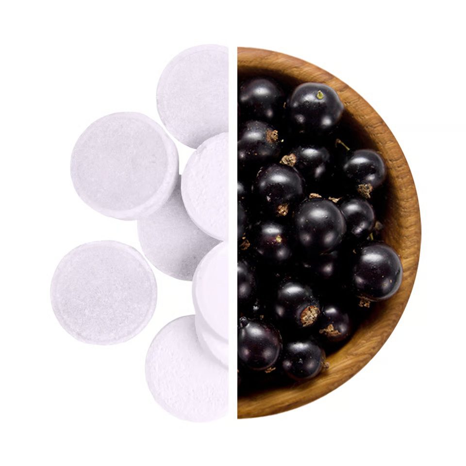 Shije Rrush i Zi (Blackcurrant) – mbushës sorbitol, rregullues aciditeti acid citrik, bikarbonat natriumi, L-Alaninë, karbonat kalciumi, glukonat kaliumi, citrat magnezi, agjent kundër ngjitjes polietilen glikol, aromë, acid L-askorbik, përzierje koncentrati panxhari dhe ekstrakt spiruline, ëmbëlsues suklalozë dhe acesulfam K, koncentrat karrote të zezë, hidroklorid piridoksine, hidroklorid tiamine.